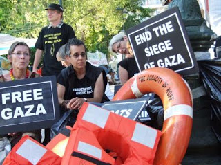 Impedidos de zarpar em direcção à Faixa de Gaza, os activistas do barco norte-americano “The Audacity of Hope” deslocaram-se à Praça Syntagma, em Atenas, para marcar um protesto contra a atitude das autoridades gregas que para além de impedirem a saída do barco detiveram o comandante. Os activistas acusam o governo grego de cumplicidade com o governo israelita. Associam a isso os investimentos israelitas na economia grega. E criticam também a Embaixada norte-americana em Atenas por ter demorado a responder aos pedidos de auxílio e de até agora não ter feito nada para alterar esta situação.