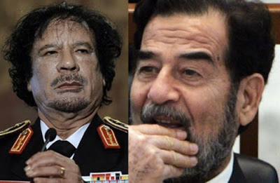 Outros factos que é preciso ter em conta sobre a situação no Médio Oriente é o de que Saddam caiu derrubado pelos Estados Unidos, Grã-Bretanha e ajudantes, numa clara tentativa de mudança de regime feita a partir do exterior; Kadhafi caiu devido à revolta dos líbios (embora com ajuda externa…) durante a chamada Primavera Árabe. No primeiro caso, acção absolutamente condenável, até porque assentou numa mentira fabricada para justificar a invasão; no segundo caso, acção perfeitamente aceitável porque qualquer povo tem o direito inalienável de ser livre e a tentar essa liberdade, desenvolvendo uma revolta para afastar um ditador, independentemente do resultado que venha a conseguir.