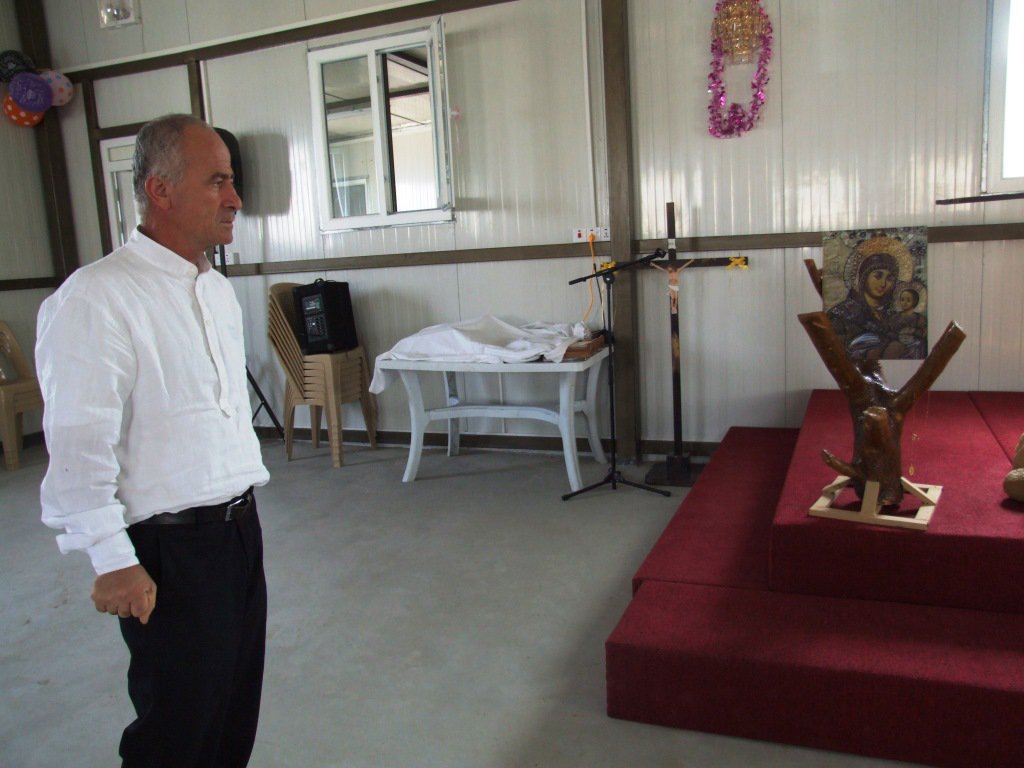 Foi aí, no norte do Iraque, que encontrei o Padre Jalal Yako. Tinha fugido de Qaraqosh e era o responsável pelo campo de refugiados Ashty 1, que albergava 265 famílias cristãs, em contentores com fogão à porta. Havia uma Igreja improvisada (ver fotografia) e a missa era celebrada três dias por semana.