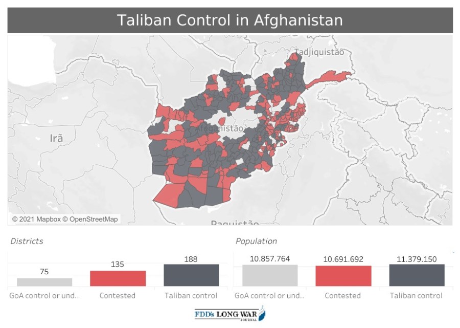 O Ministro afegão do Interior, citado pela AFP, disse por estes dias que o governo tem uma força aérea poderosa e prometeu usar todos os meios para defender as cidades afegãs. É essa a linha vermelha: os Taliban podem controlar as zonas rurais, mas não as cidades. Mesmo que o Governo afegão prometa lutar e resistir, o avanço Taliban é inequívoco: as zonas totalmente controladas pelo Governo são apenas a oeste da capital e a própria Cabul. Uma nova guerra civil está já a decorrer, mas a partir de agora sem interferência directa dos Estaddos Unidos.