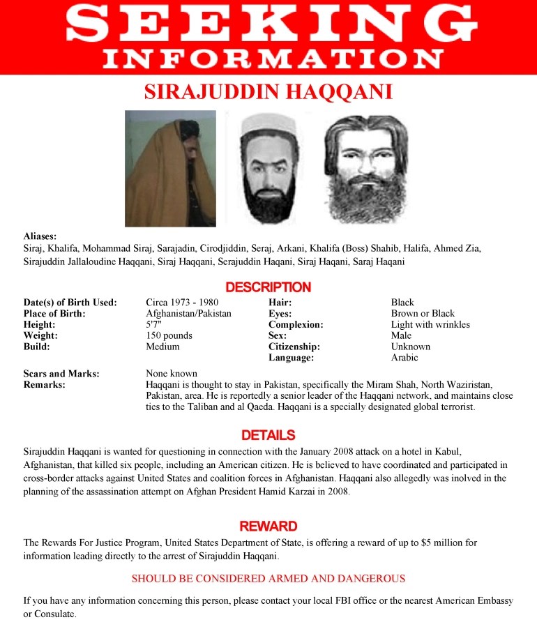 Os Estados Unidos oferecem 5 milhões de dólares por Sirajuddin Haqqani.