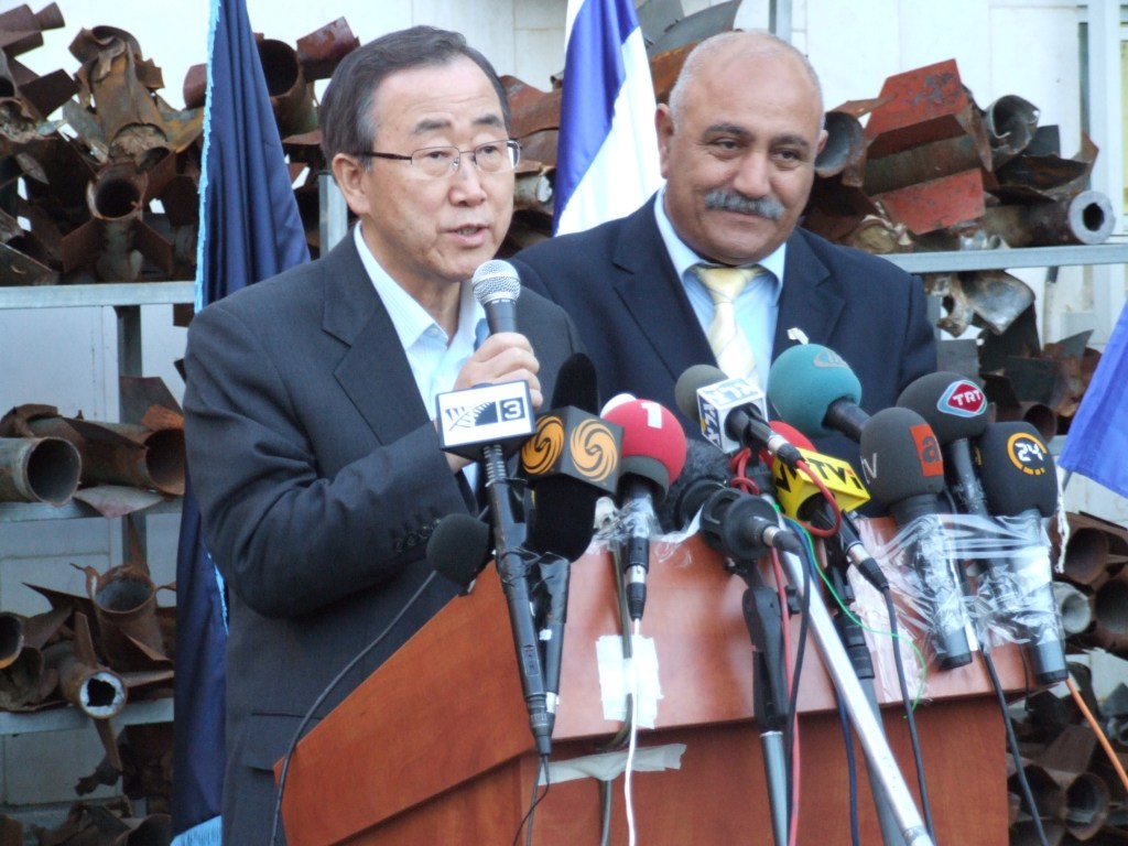 Quando António Guterres foi eleito Secretário-geral da ONU escrevi neste blogue https://meumundominhaaldeia.com/2016/09/20/antonio-guterres-arrisca-se-a-ser-o-ultimo-secretario-geral-da-onu/ que António Guterres poderia vir a ser o homem com a ingrata tarefa de fechar a porta das Nações Unidas. Passaram mais de sete anos e o perigo mantém-se. Escolhi esta foto para este texto apenas para dizer que António Guterres não é Ban Ki Moon, o antecessor de Guterres no cargo de secretário-geral da ONU. Esta foto (20.01.2009) mostra Ban Ki Moon, em Siderot, junto à Faixa de Gaza, numa conferência de imprensa, tendo como pano de fundo a bandeira de Israel e os restos de rockets disparados a partir do território palestiniano. As armas tinham-se calado há poucas horas nessa guerra em 2008/2009. Tenho para mim que foi um momento em que Ban Ki Moon se deixou instrumentalizar ou a visita foi mal preparada e Ban Ki Moon foi mal aconselhado. Porque também é verdade que a seguir foi a Gaza, visitou locais das Nações Unidas que foram bombardeados por Israel e confessou ter ficado chocado: “este ataque contra as Nações Unidas é indigno e totalmente inaceitável”. Ban Ki Moon exigiu uma investigação e uma explicação completa “para que haja a garantia de que isto nunca mais volta a acontecer. Mas já voltou a acontecer.