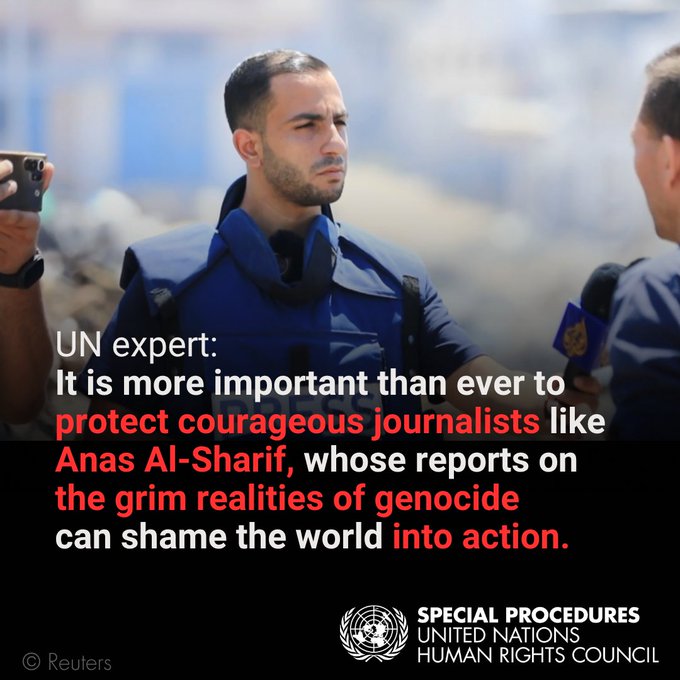 Israel ameaçou várias vezes matar Anas al-Sharif, e matou! O Comité para a Protecção dos Jornalistas tinha manifestado séria preocupação com a segurança de Anas al-Sharif considerando que estava a ser alvo de uma campanha de difamação israelita. O jornalista recebia ameaças via telefone dizendo-lhe para deixar de noticiar a guerra e sair do norte do território. Em julho, a Al Jazeera tinha denunciado os “esforços incansáveis” do exército israelita para uma “campanha contínua de incitamento contra correspondentes e jornalistas da Al Jazeera na Faixa de Gaza” considerando que era “uma tentativa perigosa de justificar a perseguição dos seus jornalistas no terreno”. Convenhamos que se Israel quisesse matar Anas al-Sharif por ser “terrorista” não tinha feito ameaças relacionadas com a cobertura jornalística.