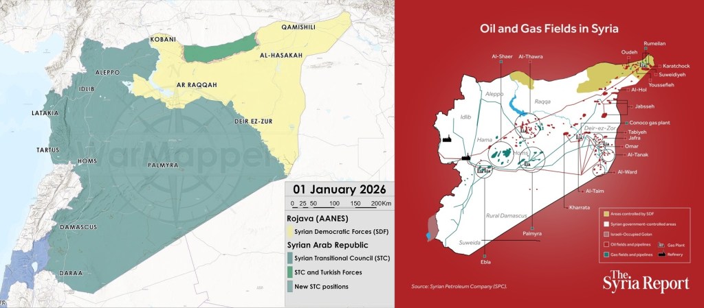 Por agora, o cessar-fogo que estava em vigor foi prolongado até 11 de Fevereiro. Um dos objetivos é forçar a integração das FDS nas forças militares de Damasco; o outro é permitir a transferência dos presos da oEI, da Síria para o Iraque. Os Estados Unidos pretendem a transferência de cerca de 7 000 presos (distribuídos por várias prisões que estavam sob alçada das forças curdas) e alguns já foram entregues às autoridades iraquianas. Outros, familiares, foram libertados, segundo a Sana, agência de notícias síria, como foi o caso de 126 menores numa prisão da província de Raqa. O caos que a ofensiva síria tem gerado também levou à fuga da prisão de Chaddadi, noticiada pelo Ministério do Interior de Damasco, de 120 membros da oEI, 81 dos quais terão sido capturados.